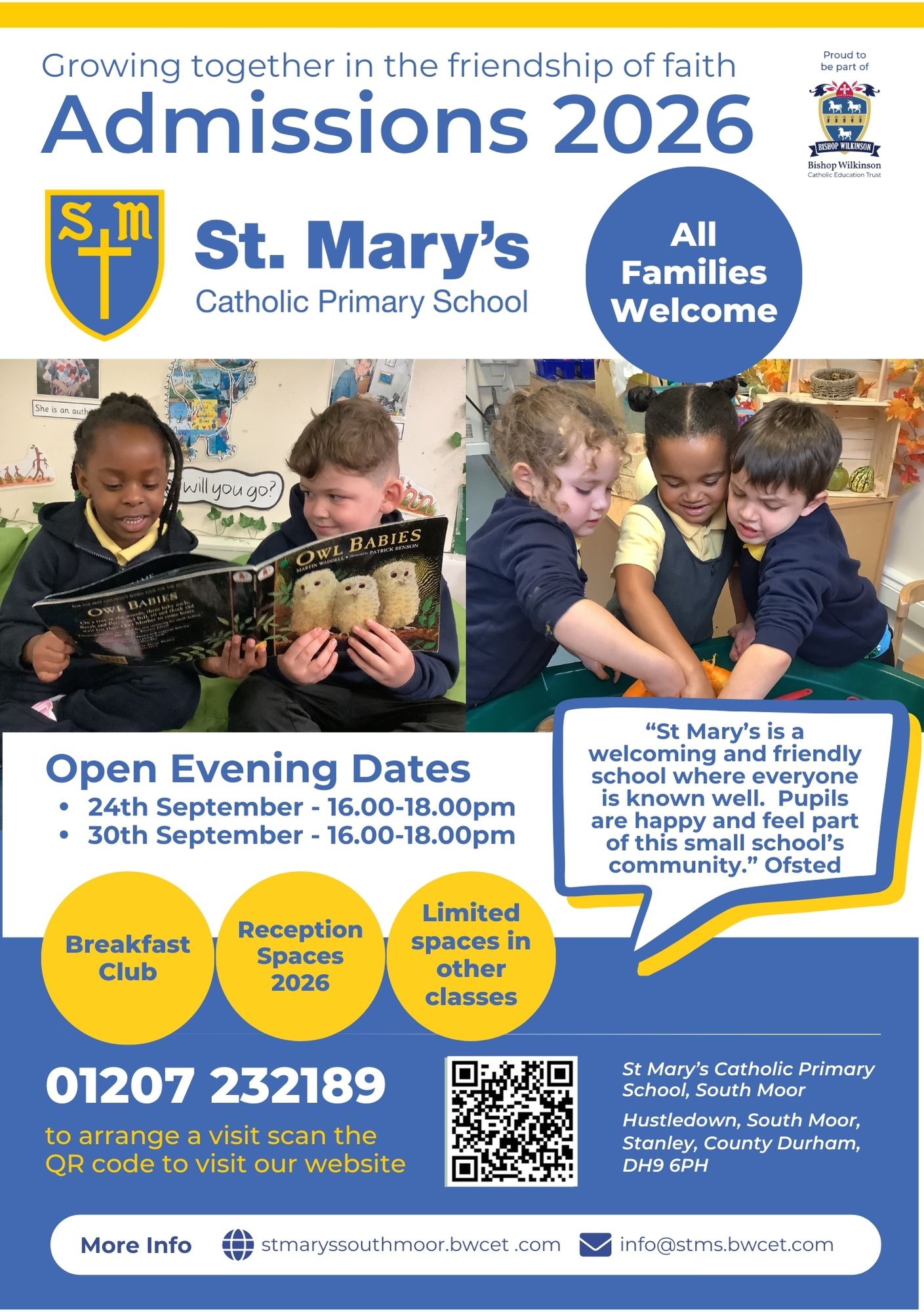 At St Mary’s, we keep our parents, carers and families informed about upcoming events and celebrations of our children’s successes. Regularly, we publish a newsletter, which is sent out electronically to all of our parents and is made available on this page.